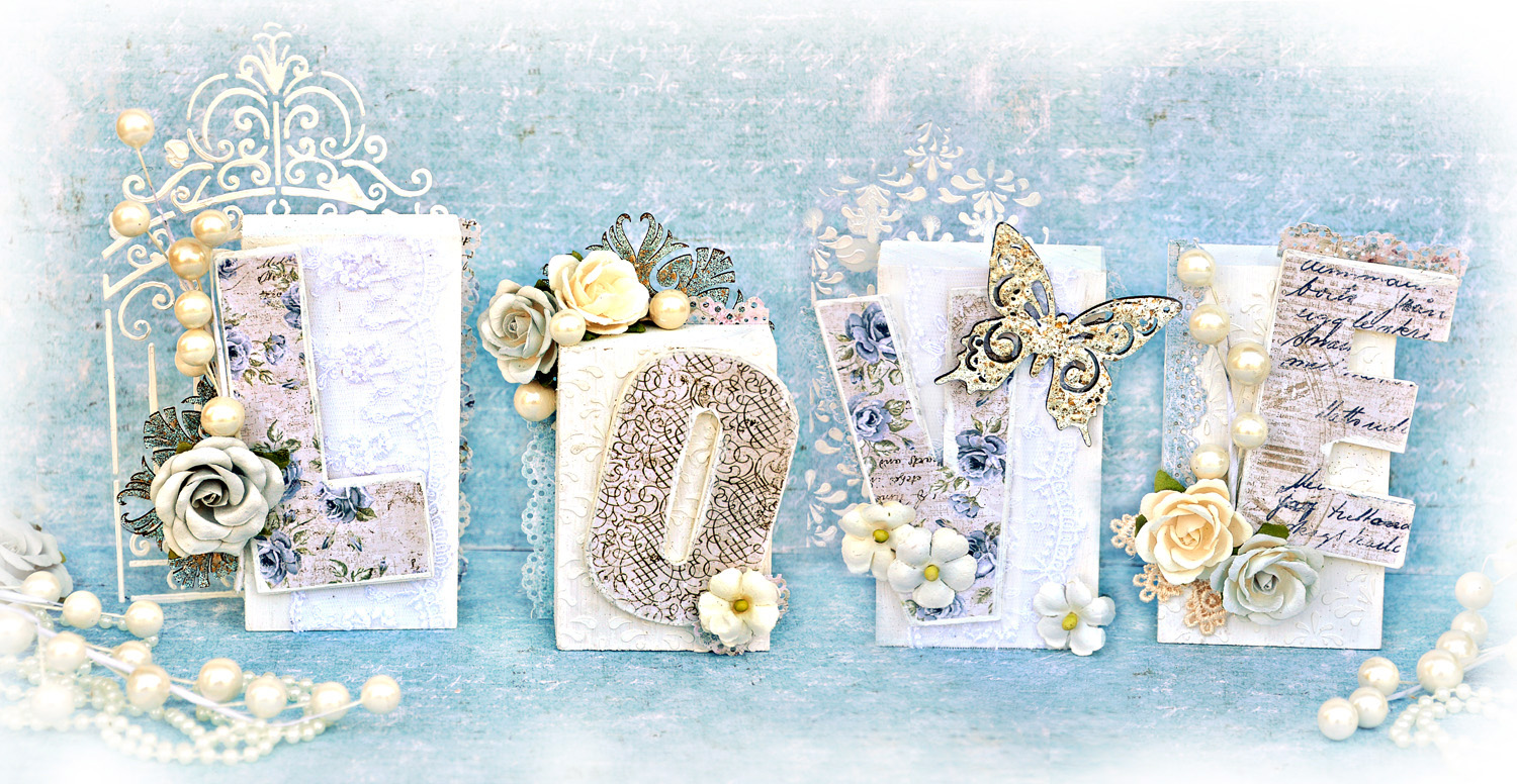Now this is what the blocks look like without the blue background. As you can tell, the acrylic stencil backgrounds do not show up, which is why I decided to photograph on the darker background. But this image below shows how feminine and delicate the blocks are. The acrylic stencils look even better in person.