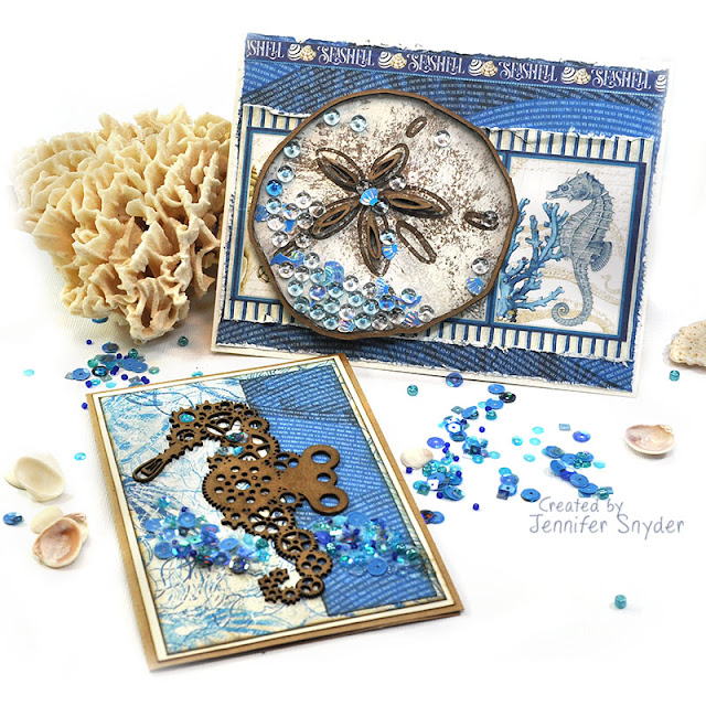 The shaker mix on the sand dollar card is Buttons Galore - Shimmerz Splash and the sequin mix accents on the seahorse card were created using Buttons Galore Blues Mix - a blend of beads, and various sequins.